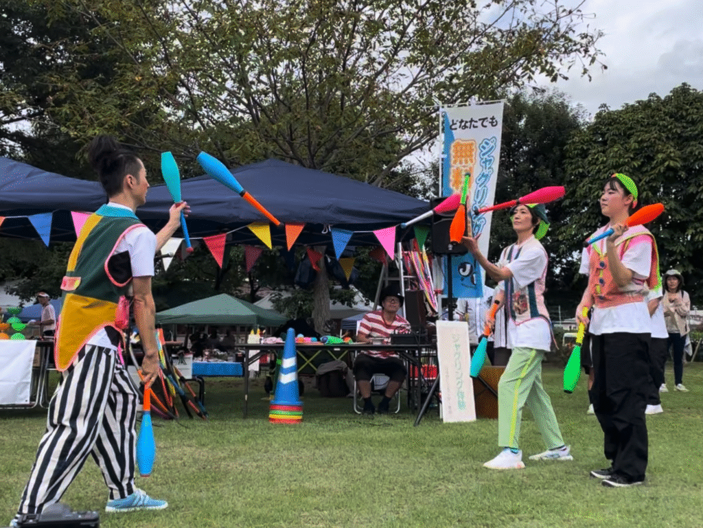 「信州ユースサーカスのパフォーマンス」と「JDS誰でも参加のジャグリング・ワークショップ」塩尻市ひらいで遺跡祭り、今年も大盛況!