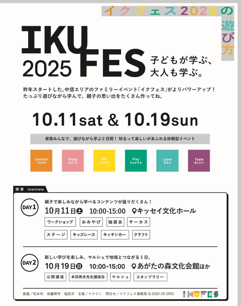 昨年スタートした中信エリアのファミリーイベント「イクフェス」が、今年はさらにパワーアップして帰ってきます!
